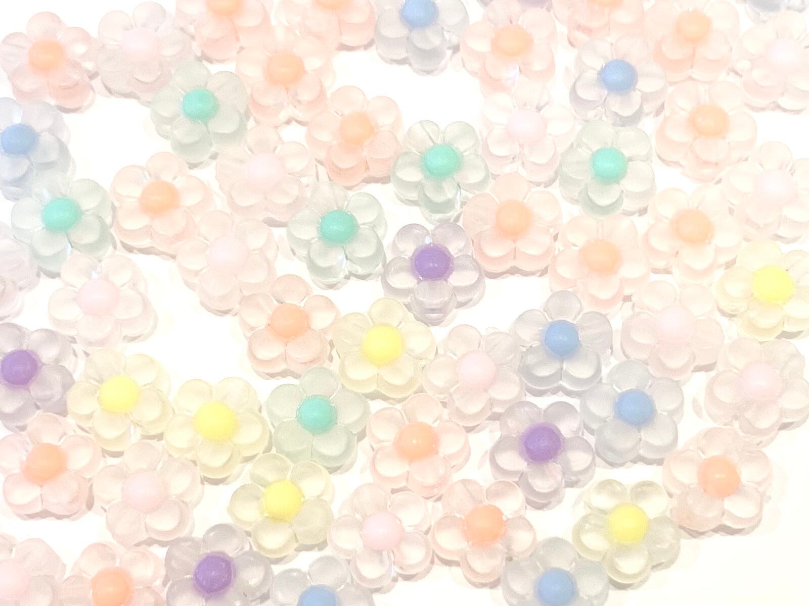 再入荷♡80個 ふんわりカラーお花のビーズ