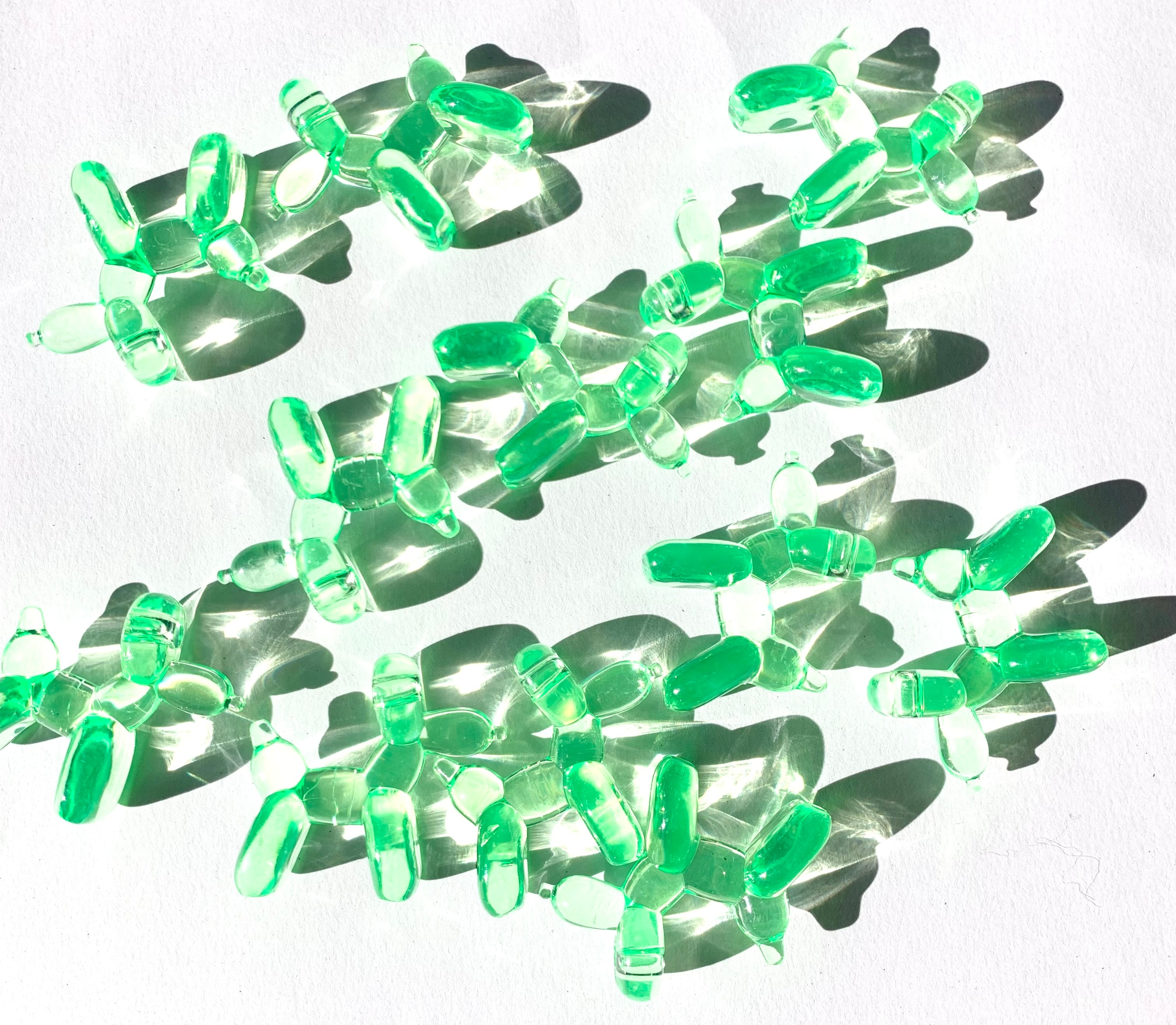 アクリルのバルーンドッグ(風船犬)モチーフのパーツです。上部に3mm程の穴がありチェーンが通せます。